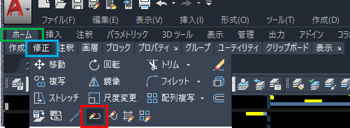 ホーム タブ → 修正 パネル → ポリライン編集 ボタン